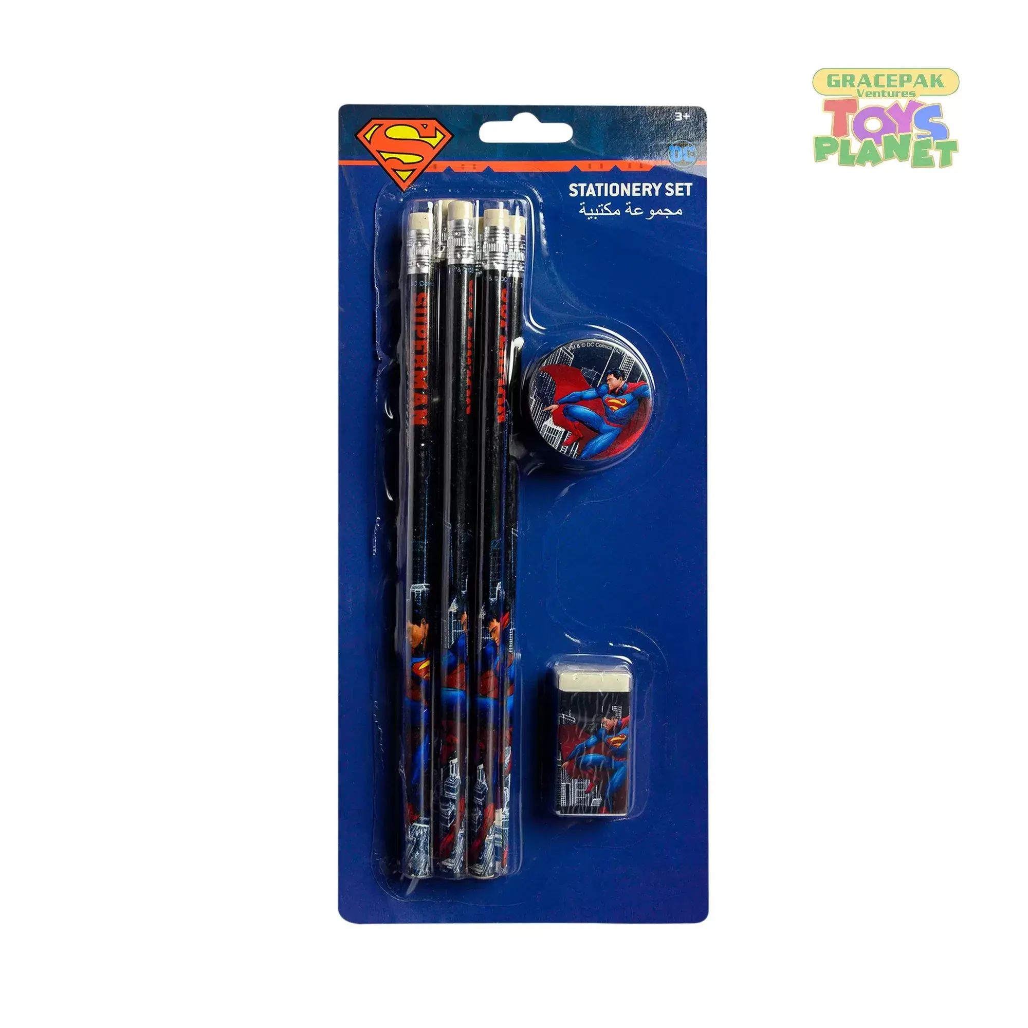 Superman Stationery Set 8pcs are great for party favors, school rewards, or school supplies! 4 pencils in each pack. No. 2 lead with real wood and eraser. Exciting designs capture the attention of any Superman fan!