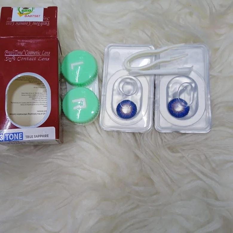 True Sapphire Lenses purely Fashion: 1. A pair of Contact lenses 2. A pair of tweezers 3. Contact lenses solution 4. Contact lenses storage containers They'll serve you over 8 months.